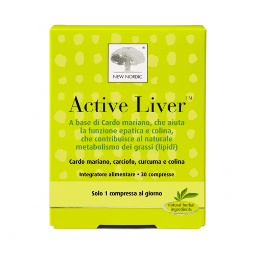 Integratore alimentare a base di cardo mariano, che aiuta la funzione epatica. Le compresse Active Liver sono prodotte in Svezia e contengono estratti di cardo mariano, carciofo, curcuma e pepe nero, con l'aggiunta di colina. Il cardo mariano e il carciofo supportano la naturale funzione epatica. La colina contribuisce al normale metabolismo dei lipidi ed al mantenimento della normale funzione epatica.