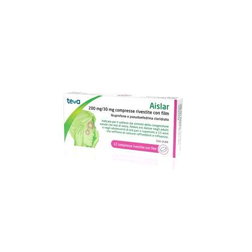 Aislar è indicato per il sollievo dai sintomi della congestione nasale con mal di testa, febbre e/o dolore associati a raffreddore e influenza.