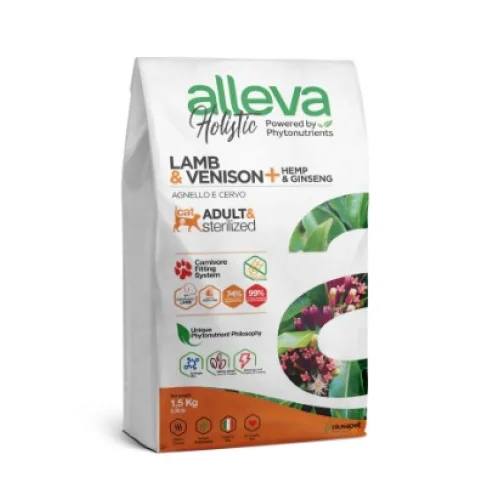 ALLEVA HOLISTIC CAT ADULT & STERILIZED LAMB & VENISON + HEMP & GINSENG KG 1,5