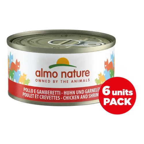 Pollo 55%, brodo di pollo 24%, gamberetti 20%, riso 1%.