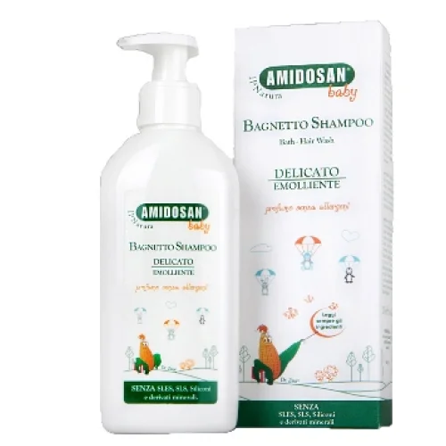 Versare una piccola quantità di Amidosan Bagnetto Shampoo su pelle e capelli bagnati e massaggiare delicatamente. Risciacquare con acqua tiepida.