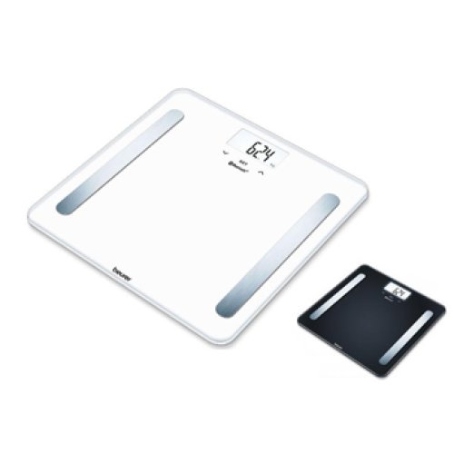 Bilancia diagnostica con trasmissione automatica dei dati nella portata del Bluetooth dopo l'apertura dell'app. Calcola peso, massa grassa, percentuale di acqua, massa muscolare, massa ossea ed è composta da un indicatore calorico AMR/BMR e IMC.