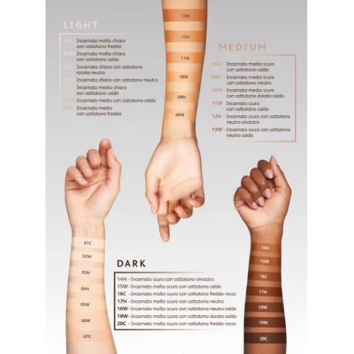 Dagli incarnati più light, passando per i medium fino a quelli più dark. Uno shade range che mette al centro ogni persona ed il suo skin factor.