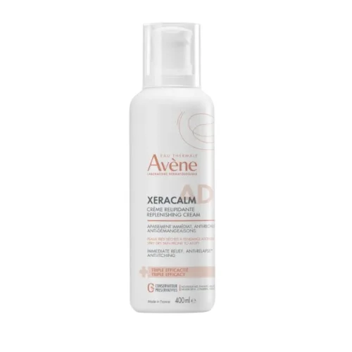 AVENE XERACALM AD Crema liporestitutiva 400 ml è un trattamento dermocosmetico ad alta tollerabilità progettato per lenire e proteggere la pelle molto secca, particolarmente soggetta a prurito e irritazioni. Grazie alla sua formulazione innovativa, agisce sul microbioma cutaneo per prevenire gli episodi di secchezza intensa e ristabilire l’equilibrio naturale della pelle.