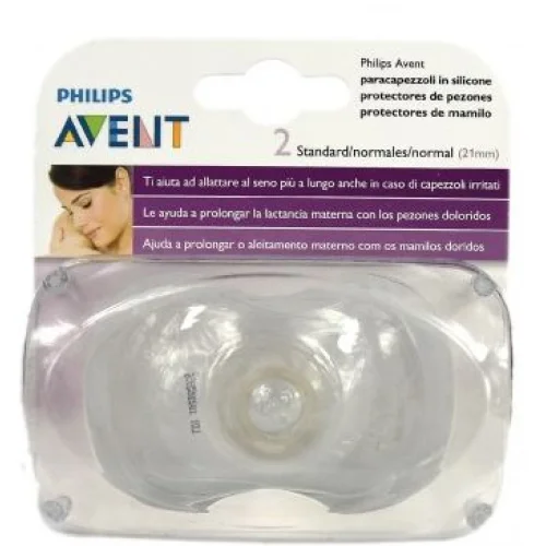 La confezione contiene 2 paracapezzoli in silicone standard.