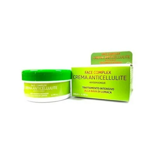 'Face complex crema anticellulite alla bava di lumaca è un trattamento intensivo anticellulite formulato per combattere le imperfezioni della pelle del corpo a buccia d''arancia. La caffeina trova impiego quale astrigente nel trattamento degli stati congestizi della pelle e come vaso protettore. E'' una crema ad alto contenuto di sostanze attive ad azione tonificante, idratante, stimolante, rinfrescante, snellente, drenante.Ha assorbimento immediato.'