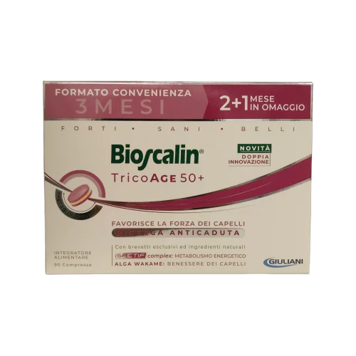 Bioscalin Tricoage 90 compresse è in formato convenienza 2+1 mese omaggio