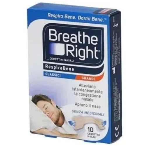 Cerotto adesivo con strisce elastiche che si sollevano allargando delicatamente i passaggi nasali. Donano sollievo immediato dalla congestione nasale causata da allergie, raffreddore e setto deviato.