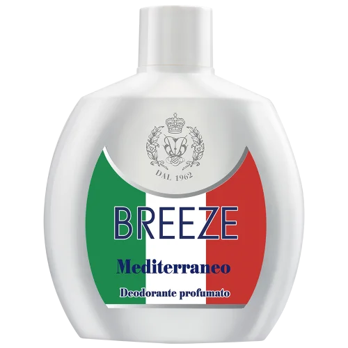 Breeze Mediterraneo è il deodorante formulato senza Gas e senza Sali di Alluminio di grande efficacia nel prevenire le conseguenze olfattive della traspirazione. Regala freschezza e protezione per tutta la giornata.