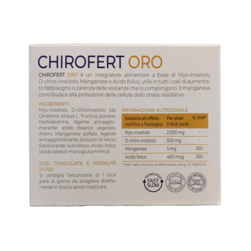 Myo-inositolo, D-chiro-inositolo (da Ceratonia siliqua L., fructus) polvere, agenti antiagglomeranti: acidi grassi, biossido di silicio, sali di magnesio degli acidi grassi, talco; edulcoranti: sucralosio, neoesperidina DC; aromi, manganese solfato, acido folico (acido pteroil-monoglutammico).