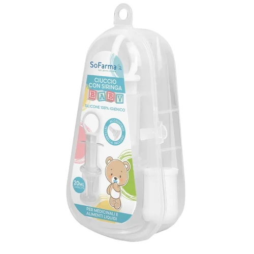 Ciuccio con siringa per medicinali e alimenti liquidi.