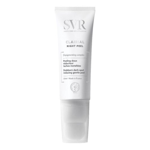 Clairial Night Peel è un peeling professionale formulato per trattare le macchie scure del viso che può essere usato comodamente a casa. SVR unisce il cuore della formula di un prodotto best-seller come il Clairial Serum con un enzima derivato dalla Papaya che, grazie alla sua azione cheratolitica, schiarisce le discromie. Fin dalla prima notte di utilizzo, la pelle appare più levigata e luminosa. Notte dopo notte, le macchie brune appaiono meno visibili e l’incarnato risulta uniforme e radioso.