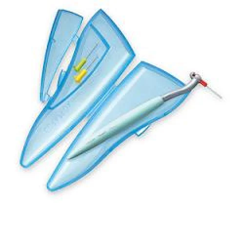 La confezione contiene 1 manico tascabile in plastica con attacco a click, 1 pratica scatolina a doppio comparto per manico e scovolini, 3 scovolini di diversa misura (07 rosso, 09 giallo, 011 verde chiaro).