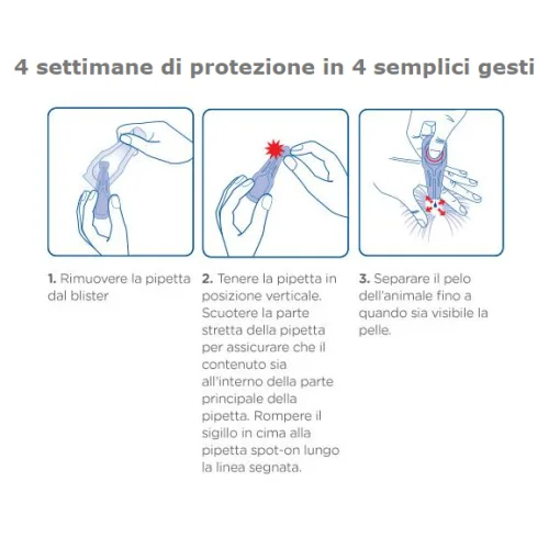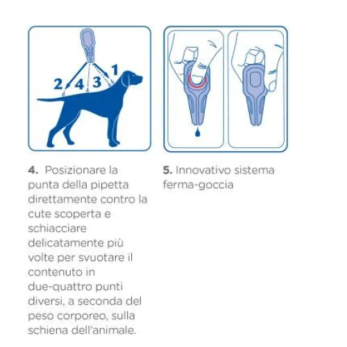 La confezione contiene 4 pipette per cani da 20 a 40 kg da 4,40 ml 268mg+2400mg