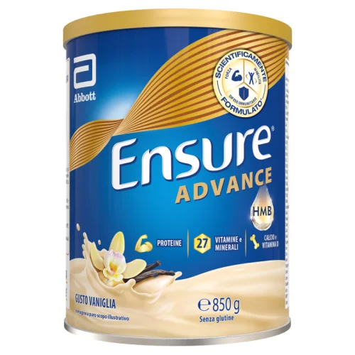 Ensure Advance è un integratore alimentare, con una miscela esclusiva di proteine, vitamina D e l'azione specifica dell'HMB, un metabolita attivo delle proteine che contribuiscono al mantenimento e alla crescita della massa muscolare.