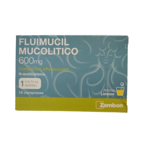Fluimucil Mucolitico 600 mg compresse effervescenti in blister alluminio-politene. Scatola da