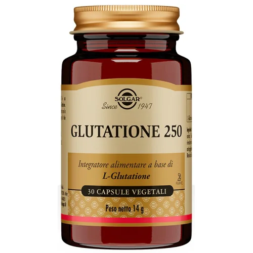 Integratore alimentare contenente 250 mg di L-glutatione per capsula vegetale. Indicato nei casi di ridotto apporto con la dieta o aumentato fabbisogno di tale nutriente.
