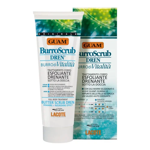 - Dren: grazie all'azione osmotica di sali marini selezionati e delle alghe guam, massaggiato sulla pelle esplica una concreta azione drenante.