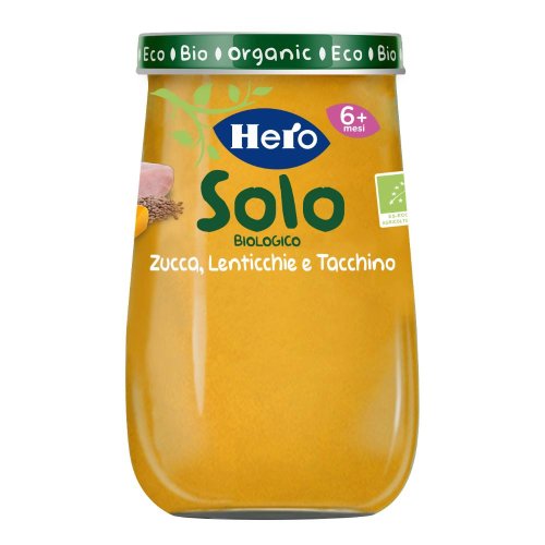 Hero Solo Omogeneizzato di Zucca, Lenticchie e Tacchino è una ricetta semplice preparata con solo verdure e carne biologici, nata per accompagnare i più piccoli alla scoperta graduale di nuovi sapori assecondando il naturale sviluppo della loro prima infanzia.