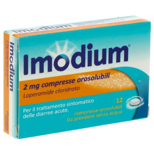 PosologiaPosologia. Adulti: La dose iniziale è di 2 capsule rigide o 2 capsule molli o 2 compresse orosolubili (4 mg). Proseguire il trattamento con 1 capsula o 1 compressa (2 mg), dopo ciascuna evacuazione successiva di feci non formate (molli). La dose massima giornaliera è di 8 capsule o compresse al giorno (16 mg). Popolazioni speciali. Bambini di età compresa tra i 6 e i 17 anni (vedere paragrafo 4.3): La dose iniziale è di 1 capsula rigida o 1 capsula molle o 1 compressa orosolubile (2 mg). Proseguire il trattamento con 1 capsula o 1 compressa (2 mg), dopo ciascuna evacuazione successiva di feci non formate (molli). La dose massima giornaliera nei bambini deve essere stabilita in base al peso corporeo (3 capsule o compresse/20 Kg), ma non deve superare il massimo di 8 capsule o compresse al giorno (16 mg). I dati disponibili riguardanti l’uso di loperamide HCl nei bambini al di sotto di 12 anni di età sono limitati (vedere paragrafo 4.8 “Effetti indesiderati”). Anziani: Negli anziani non è necessario un aggiustamento della dose. Compromissione della funzionalità renale: Nei pazienti con compromissione della funzionalità renale non è necessario un aggiustamento della dose. Compromissione della funzionalità epatica: Nonostante non siano disponibili dati in pazienti con compromissione della funzionalità epatica, la loperamide HCl deve essere usata con cautela in questi pazienti a causa del ridotto metabolismo di primo passaggio (vedere paragrafo 4.4 “Avvertenze speciali e precauzioni d’impiego”). Modo di somministrazione: IMODIUM 2 mg capsule rigide/2 mg capsule molli: assumere per bocca con un po’ d’acqua. IMODIUM 2 mg compresse orosolubili: lasciare sciogliere la compressa sulla lingua per qualche secondo; la compressa verrà dissolta rapidamente dalla saliva. Non richiede l’uso di acqua. Attenzione : Non usare per più di 2 giorni. Interrompere in ogni caso il trattamento alla normalizzazione delle feci, o se non si hanno più movimenti intestinali da 12 ore, o se compare stitichezza. Negli episodi di diarrea acuta la loperamide HCl è generalmente in grado di arrestare i sintomi entro 48 ore. Trascorso questo periodo senza risultati apprezzabili, interrompere il trattamento e consultare il medico.