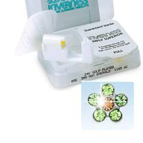 Gli orecchini sono confezionati in cassettine sterili che contengono 2 pezzi incapsulati, riposti in scomparti sigillati individualmente.