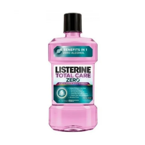 Listerine Total Care Zero è un collutorio dal gusto meno intenso, senza alcool, che grazie ai suoi 6 benefici aiuta ad ottenere la pulizia e la protezione totale di tutto il cavo orale. Elimina i batteri al di sopra e al di sotto della linea gengivale per mantenere le gengive più sane e grazie al fluoruro aiuta a mantenere i denti piú forti e piú resistenti alle carie.