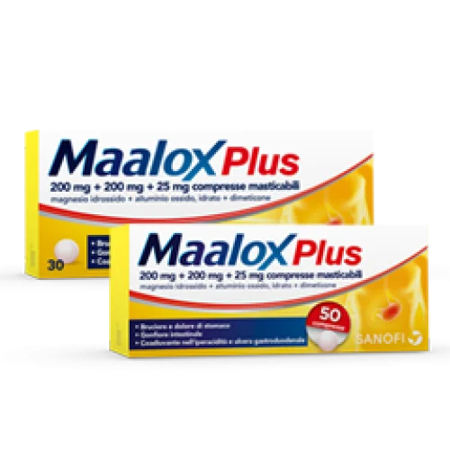 Maalox Plus è un antiacido associato ad un antimeteorico, usato come coadiuvante nelle dispepsie (ridotta attività digerente) da iperacidità gastrica. La sua azione si basa sul potere antiacido di idrossido di magnesio ed idrossido di alluminio che riducono il senso di bruciore neutralizzando l’iperacidità. La presenza del dimeticone, invece, ha un’azione contro il gonfiore intestinale, che è causa di meteorismo e flatulenza.