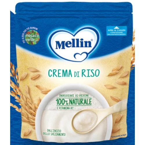 La Crema di Riso Mellin è arricchita con ingredienti di alta qualità per supportare la crescita e lo sviluppo del tuo bambino: