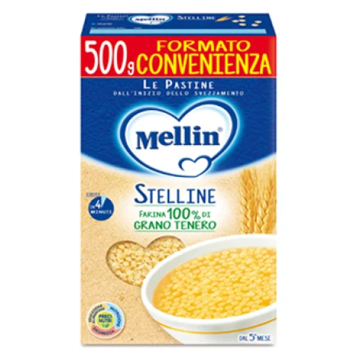 La Pastina Mellin richiede una cottura di 4 minuti circa, a seconda della densità e della consistenza preferite dal bambino.
