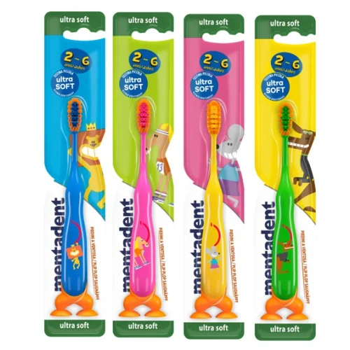 spazzolino creato per i denti, le mani ed il divertimento dei bambini. Setole in nylon arrotondate e morbide per evitare traumi ai fragili tessuti gengivali dei piccoli. Particolarmente indicato dai 3 agli 11 anni. Testina, 20 mm, adatta alla morfologia dentale dei bambini.