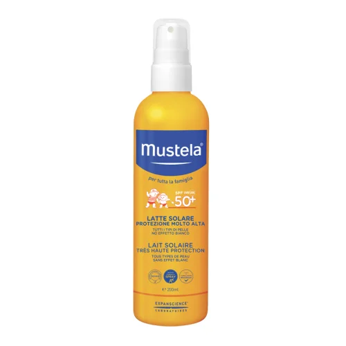 Spray Solare Mustela è specificamente formulato per proteggere la pelle delicata di neonati, bambini e adulti dai danni dei raggi ultravioletti, utilizzabile fin dalla nascita.