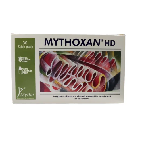 Mythoxan HD 30 stick pack presenta una formula a più alto dosaggio (HD) consigliata nei casi di malnutrizione avanzata caratterizzati da bassi livelli di albumina nel sangue ed evidente perdita di massa muscolare (cachessia) causata da aumentato fabbisogno di aminoacidi. Indicato nella malnutrizione dei pazienti con funzione renale ridotta o in dialisi.