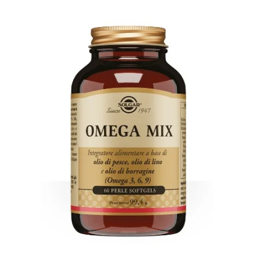 Solgar Omega Mix 60 Perle Softgel - Integratore alimentare a base di olio di pesce, olio di semi di lino e olio di borragine fonti di Omega-3-6-9