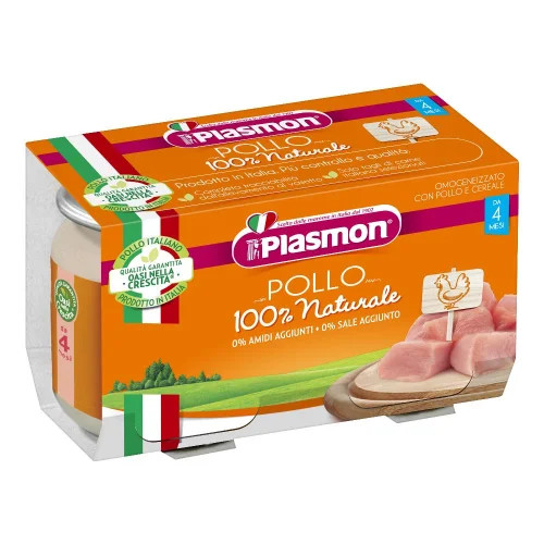 Omogeneizzato indicato dal 4°/6° mese, salvo diversa indicazione del Pediatra. Il pollo è una carne bianca dal sapore molto delicato ed è indicato per le prime fasi dello svezzamento. La carne è un alimento importante nell'alimentazione dei bambini. Gli omogeneizzati con carne Plasmon sono studiati per fornire al bambino proteine ad elevato valore biologico provenienti esclusivamente dalla carne. La carne è cotta a vapore e questo permette di mantenere al meglio le proprietà nutrizionali dell’alimento. Non contiene coloranti e conservanti, come per legge. Senza sale aggiunto.