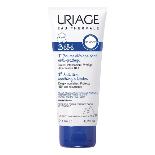 Ideale per il viso e il corpo, questo trattamento è specificamente progettato per la pelle molto secca e a tendenza atopica dei bambini. Questo balsamo in olio emolliente lenisce immediatamente le sensazioni di prurito dovute alla secchezza della pelle e riduce gli episodi di secchezza. Arricchito con olio di illipé, lascia un film protettivo non grasso sulla pelle, garantendo un comfort immediato e una vestizione rapida. Lenisce immediatamente grazie al brevetto Chronoxine, ha un'azione anti-prurito duratura grazie all'associazione esclusiva di 2 brevetti (Cérasterol 2F, TLR2 Régul) e all'acqua termale di uriage. Nutre intensamente con olio di illipé e burro di karité.