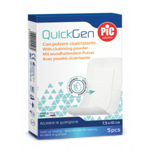 QuickGen Cerotto Cicatrizzante con acido ialuronico (7,5x10 cm) è un innovativo cerotto Pic progettato per favorire una rapida rigenerazione della pelle e accelerare la cicatrizzazione. Grazie alla presenza di acido ialuronico nel tampone, questo cerotto è particolarmente efficace nella protezione e nella guarigione delle ferite.