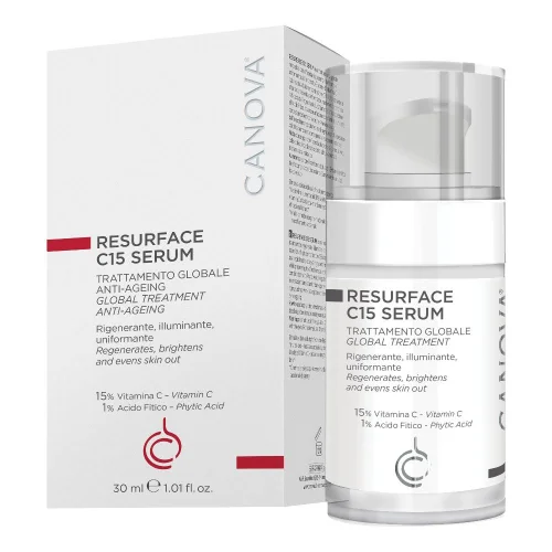 Trattamento rigenerante, illuminante, uniformante dell’incarnato per la prevenzione e la correzione dei segni del chrono e photo invecchiamento. A base di Vitamina C stabilizzata al 15%, che mantiene inalterata la sua efficacia nel tempo, in associazione con Acido Lipoico, Carnosina e Acido Fitico.