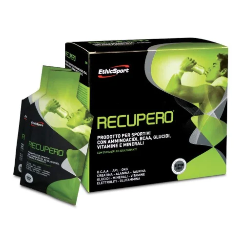 Complemento alimentare per sportivi che apporta nutrienti con diverse funzioni utili nella fase successiva alla attività sportiva. Le vitamine e gli oligoelementi contenuti svolgono numerose funzioni, in particolare contribuiscono alla riduzione della stanchezza e dell’affaticamento (Vit B2, B3, B5, B6, B12, C, Folato, Ferro), contribuiscono al normale metabolismo energetico (Vit B1, B2, B3, B5, B6, B12, C, Biotina, Calcio, Magnesio, Ferro) delle proteine e del glicogeno (vit B6) e alla regolare funzione muscolare (Ca, Mg, K). Apporta inoltre B.C.A.A. indicati nella dieta dello sportivo. Il prodotto è confezionato in buste monodose per mantenere la massima igiene ad ogni somministrazione e il perfetto dosaggio.Senza glutine, senza lattosio.