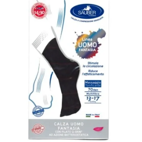 Il modello Sauber Calza Uomo 70 den 13-17 mmHg, nella versione Taglia Piccola e colorazione blu con righe rosse, rappresenta una soluzione tecnica pensata per la cura quotidiana delle gambe, combinando estetica curata e funzionalità medico-scientifica. Prodotta dalla linea uomo del marchio Sauber, questa calza è concepita come dispositivo medico CE di Classe I, studiata per il supporto venoso e il massaggio attivo degli arti inferiori.