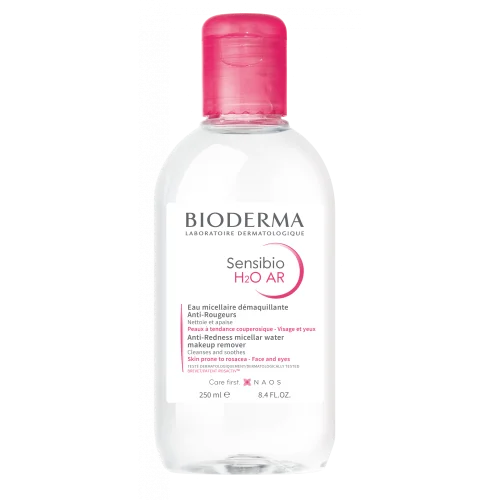 Detergente e struccante che favorisce la diminuzione dei rossori. Sensibio H2O AR è l'unica e sola acqua micellare dermatologica a presentare una perfetta compatibilità con la pelle. I suoi esteri di acidi grassi, elementi costitutivi delle micelle, sono simili ai fosfolipidi delle membrane delle cellule cutanee e aiutano a ricostruire in modo naturale il film idrolipidico della pelle. Il suo esclusivo brevetto Rosactiv agisce direttamente sul VEGF, una delle cause principali della dilatazione e dell'indebolimento dei capillari, fonti di rossori. L'estratto di Cucumis Sativus lenisce immediatamente. Formula senza profumo, senza alcool, senza parabeni, ipoallergenico.
