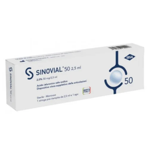 Sinovial 50 2,0% è un sostituto del liquido sinoviale, che permette di ripristinare le proprietà fisiologiche e reologiche delle articolazioni artrosiche. Quest’azione terapeutica è esplicata dalle particolari caratteristiche dell’acido ialuronico utilizzato. L’acido ialuronico contenuto in Sinovial 50 2,0%, ottenuto per via fermentativa e non modificato chimicamente, presenta un’eccellente tollerabilità. Ripristinando le proprietà viscoelastiche del liquido sinoviale, Sinovial 50 2,0% riduce il dolore e ripristina la mobilità articolare.