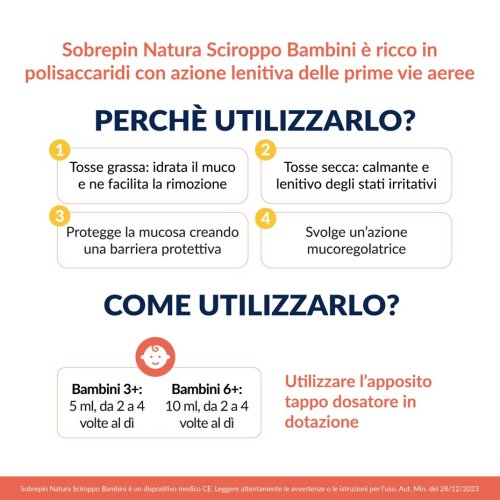 Indicato per il trattamento della tosse, sia secca che produttiva (grassa), a partire dai 3 anni d’età.