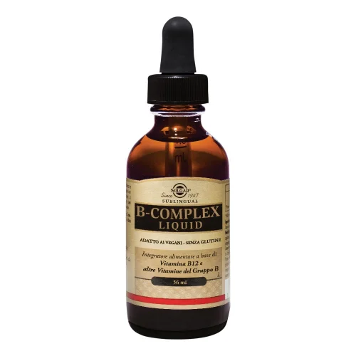 B-COMPLEX LIQUID è un integratore alimentare a base di Vitamine del Gruppo B (B1, B2, B3, B5, B6, B8, B9, B12) in gocce. Mezza pipetta (0,5 ml) fornisce un quantitativo di vitamina B12 ideale per chi segue un’alimentazione vegana.
