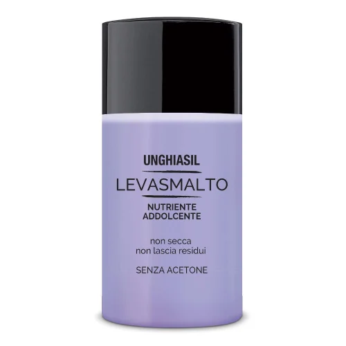 Unghiasil Levasmalto Nutriente e Addolcente non secca unghie e cuticole, non lascia residui untuosi. Senza acetone.