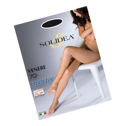 Collant 140 den con punta aperta a infradito ideale per l’estate. La punta aperta è realizzata con una innovativa tecnologia che permette una perfetta vestibilità, mantenendo il collant perfettamente posizionato. La punta aperta garantisce una maggiore freschezza e un piacevole benessere ai piedi e alle gambe anche nei mesi più caldi rendendo l’utilizzo delle calze più confortevole. Particolarmente indicato per i soggetti che manifestano una rilevante sensibilità o malformazioni alle dita. La sua particolare conformazione a infradito previene e rallenta la formazione dell’alluce valgo. La compressione graduata 18/21 mmHg aiuta la circolazione sanguigna evitando l’aggravarsi di problemi derivanti dalla stasi venosa. Morbido elastico che non segna il punto vita e tassello igienico in cotone.Con funzione igienica sanitized.