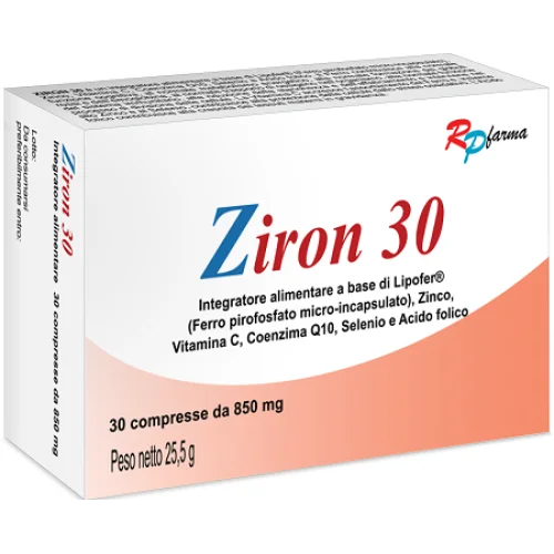 Integratore alimentare a base di Lipofer (ferro pirofosfato micro-incapsulato), zinco, vitamina C, coenzima Q10, selenio e acido folico. Il ferro contribuisce alla normale funzione cognitiva, al normale metabolismo energetico, alla normale formazione dei globuli rossi e dell'emoglobina, al normale trasporto di ossigeno nell'organismo, alla normale funzione del sistema immunitario, alla riduzione della stanchezza e dell'affaticamento e interviene nel processo di divisione delle cellule. La vitamina C accresce l'assorbimento del ferro e, insieme allo zinco e al selenio, contribuisce alla protezione delle cellule dallo stress ossidativo. L'acido folico contribuisce alla crescita dei tessuti materni in gravidanza.